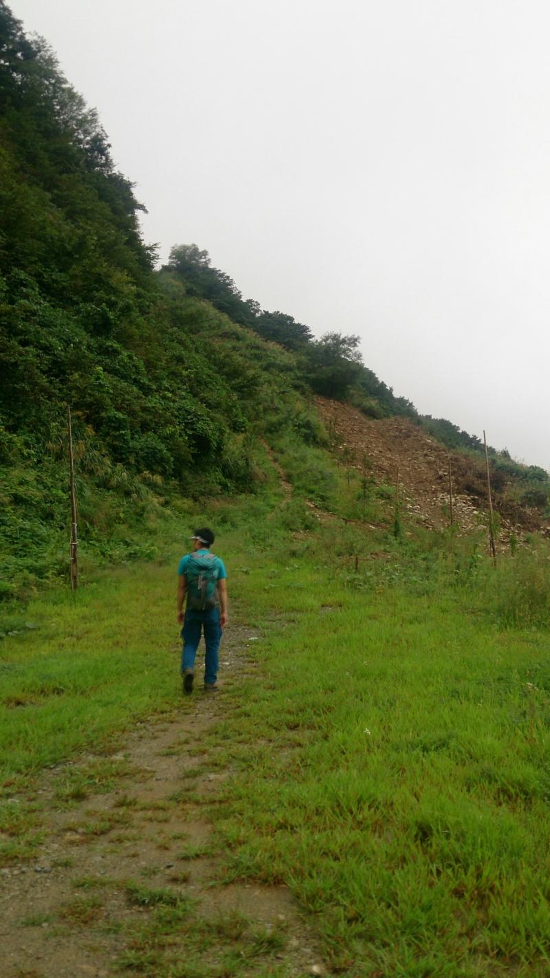 稜線まであがり頭上が開けても雲の中。白山の景色が綺麗に見えてると想像しながら進みます。