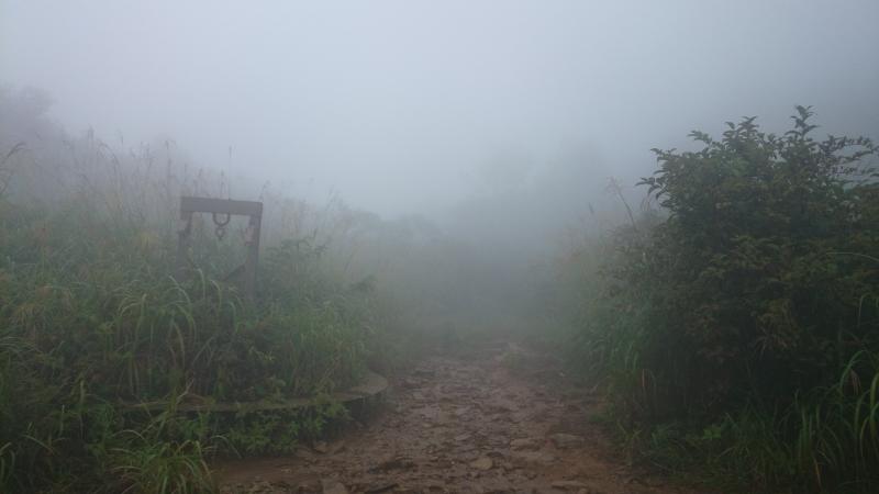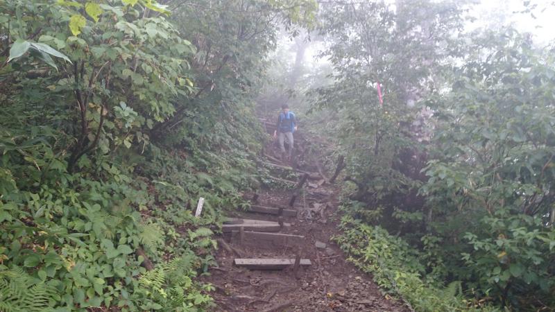 ここからは山道に入りますがずっと樹林帯です。途中にある白山ベンチからの景色は良いと思いますが、どうあがいても雲の中。