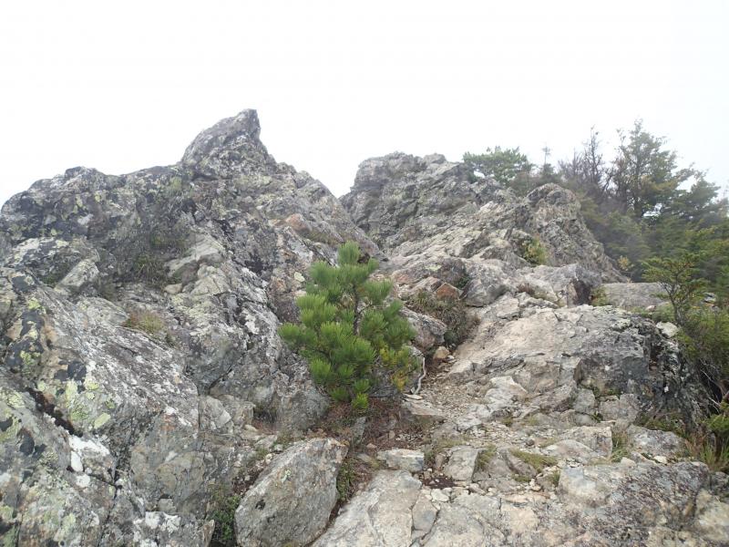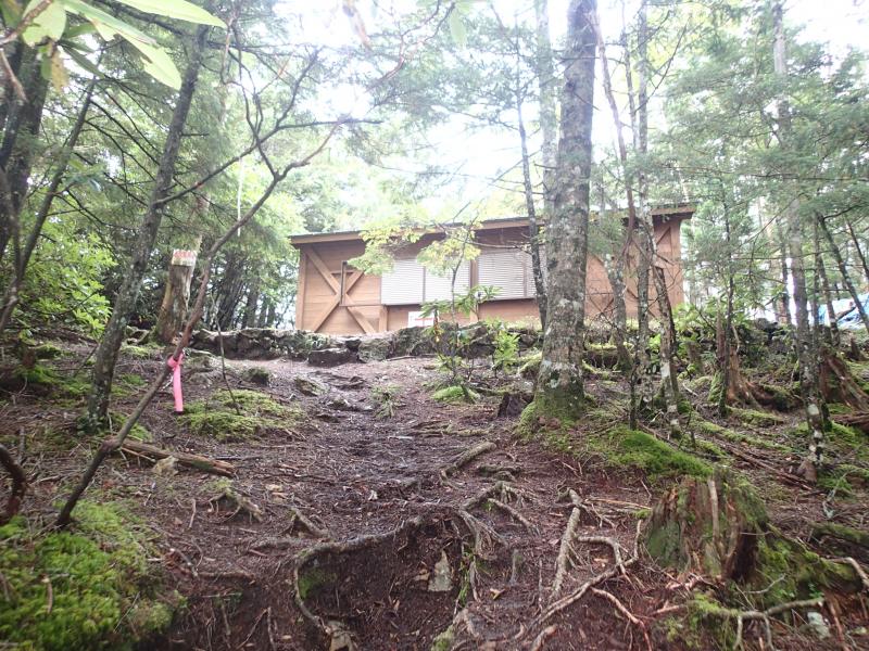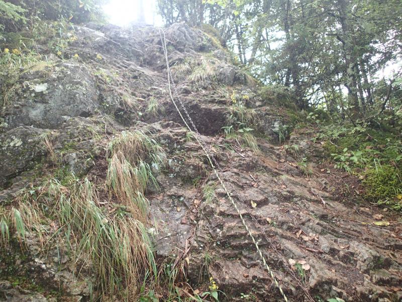 2050mピークへの詰めは鎖場の連続。鎖はそれなりにしっかりしているし、ホールドもちゃんとあるので落ち着いていけば問題なし。金山沢のコルから避難小屋は普通の登りで、小屋の裏手の岩場の先に頂上がある。