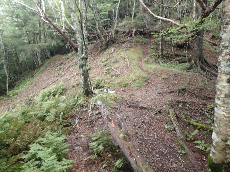金山沢のコルから見る限り、あまり使われていない様子。少し下りれば踏み跡もあったのかもしれないが。