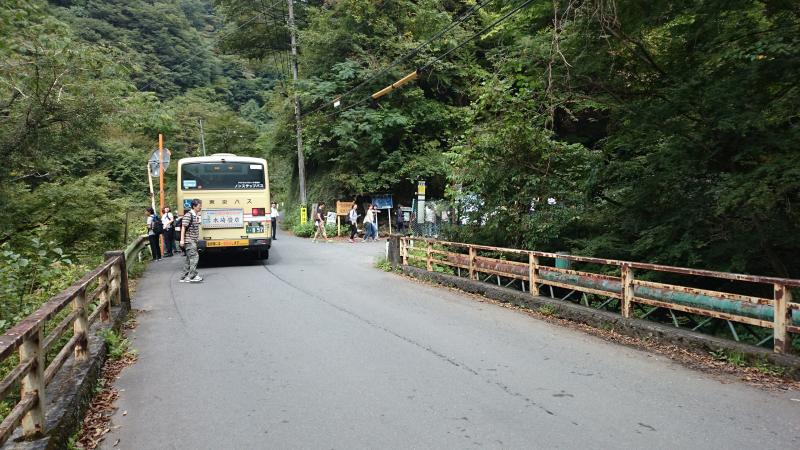 奥多摩駅からバスで13分のところにある川乗橋バス停からが今回の登山ルートです。