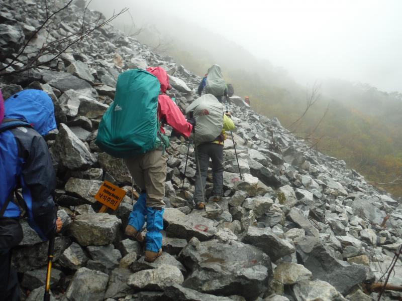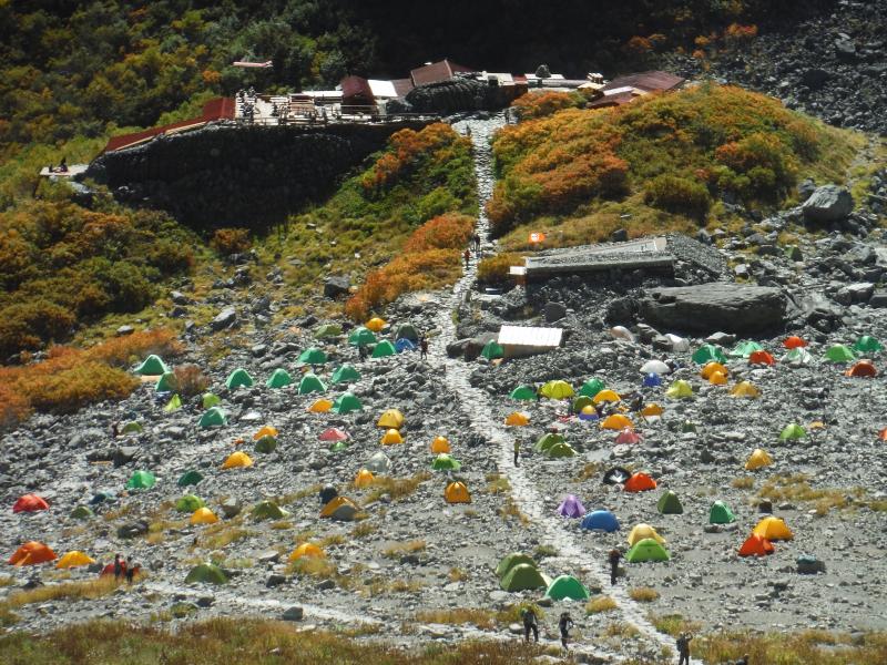- 上高地~涸沢までは特に危険個所はありませんが、崩落地は浮石があるので注意。
