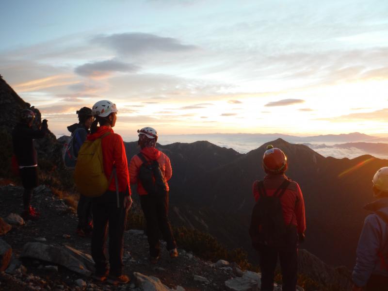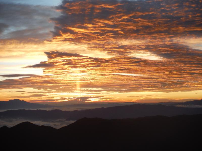 細めに休憩を取り、山頂手前でご来光を眺めました。