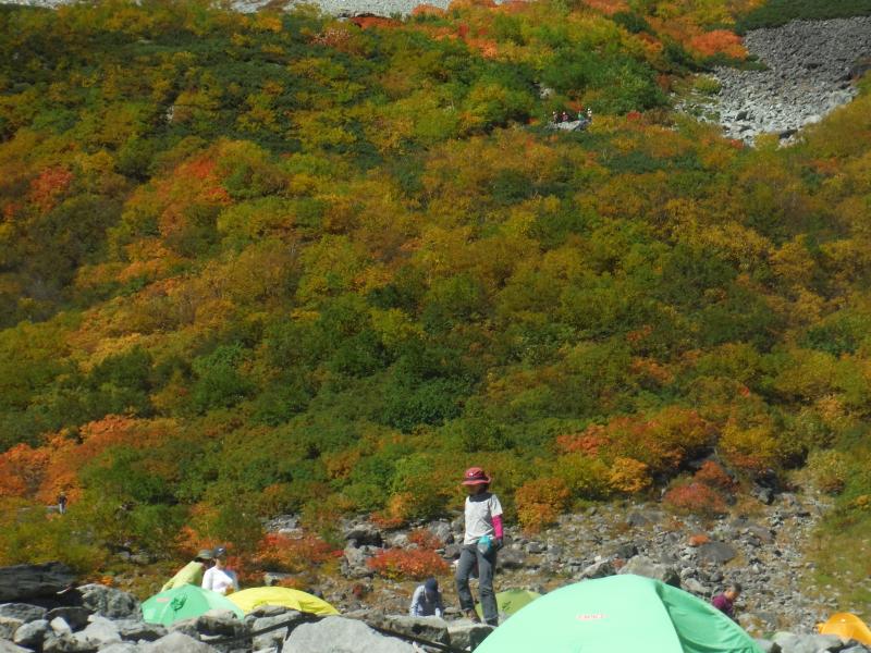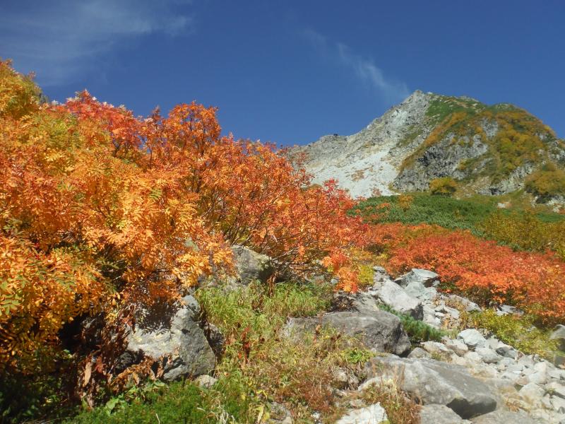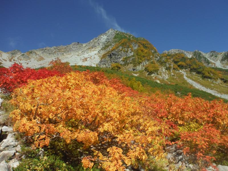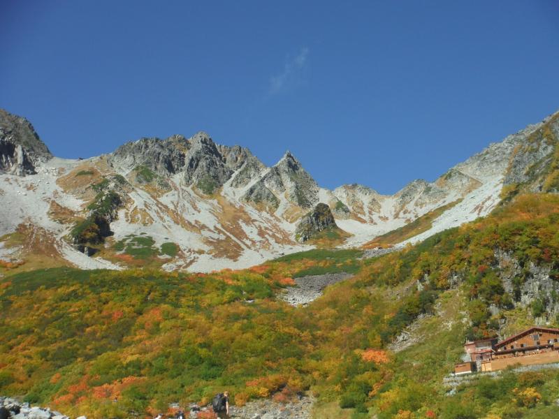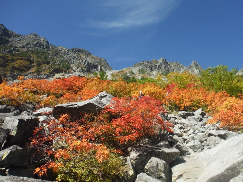 個人的には、涸沢小屋からザイテン方面に向かう登山道を少し行くと鮮やかな紅葉が見れたのでおすすめです。