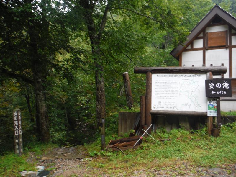 翌日外は昨日よりひどい雨。登山は諦めざるを得ませんでしたがせめて滝だけでも…!ということで日本の滝100選の2位にも選ばれたという安の滝へ行くことにしました。集落の終点からさらに細い道を進むと左手に案内板が。そこから先は手に汗握る未舗装のダートな道で、途中兎や狸が飛び出してきました。たどり着いた駐車場は誰一人おらずこれまた心細い場所でしたが、意を決して出発。熊鈴は2個装備、スプレーも持参、常にホイッスルを鳴らしながら歩き始めました。