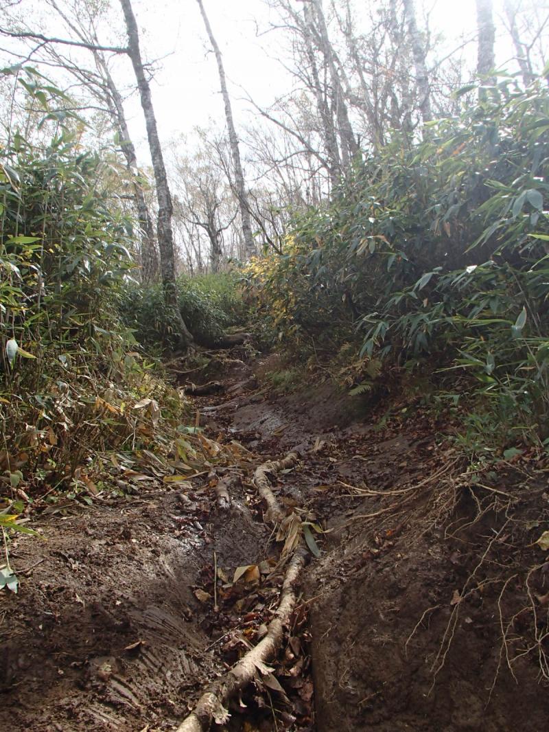 頂上が近くなると登山道がえぐれてる箇所が多く、ドロドロとなる事覚悟で走ることが必要。
