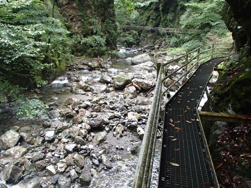 - ・風折の滝手前までは渓谷美を楽しむ遊歩道になっていますが、一部崩れて通行不能になっており、川沿いを歩かないと行けません。その為、降雨時は川沿いも増水の為通行できない場合がありますので、注意して下さい。(無理は厳禁です!)