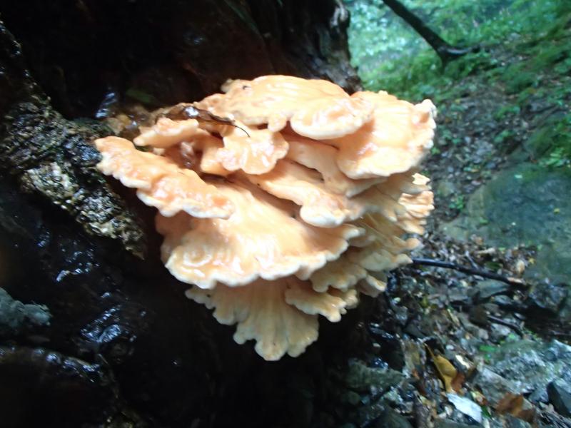 ・天然のシイタケやマイタケを発見し、疲れも吹き飛ぶ場面もありましたが、下山時に降雨が激しくなり、渡渉箇所では膝下あたりまで浸からざるをえない状況でした。テンションだだ下がりで下山しました。