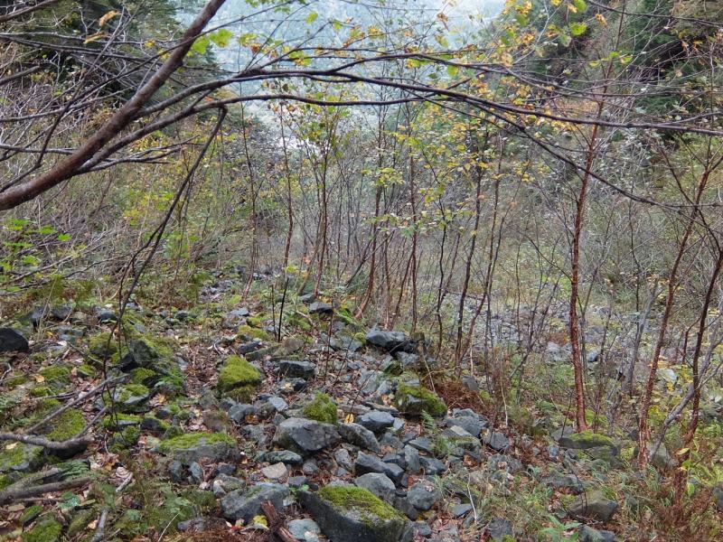 中畠沢はガレガレの急斜面で、登るたびにガレが崩れていきます。