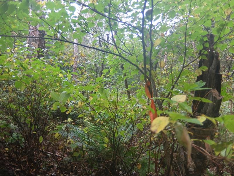 藪の森の中にたまに赤テープが出現しますが、時期的に踏み跡は見当たらなく、ただの森のように見えました。