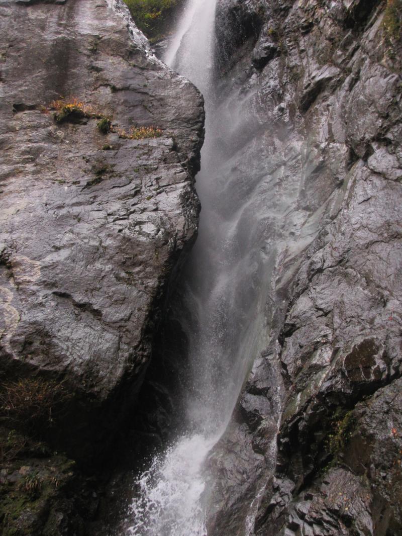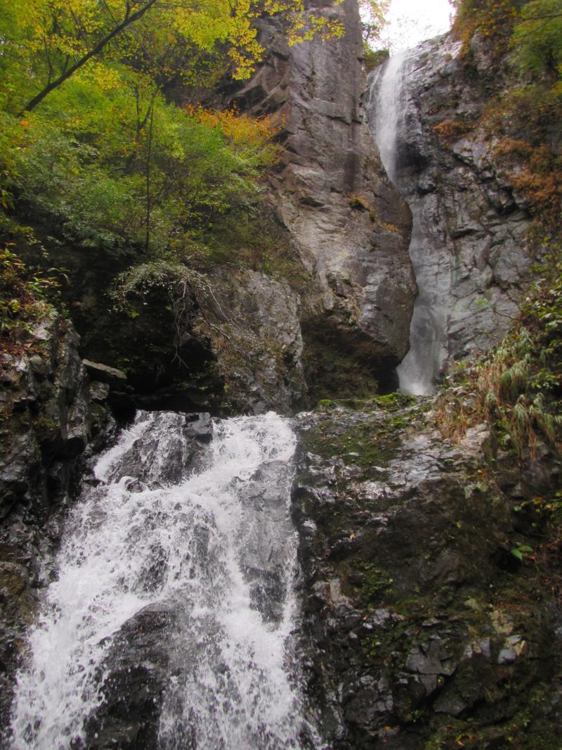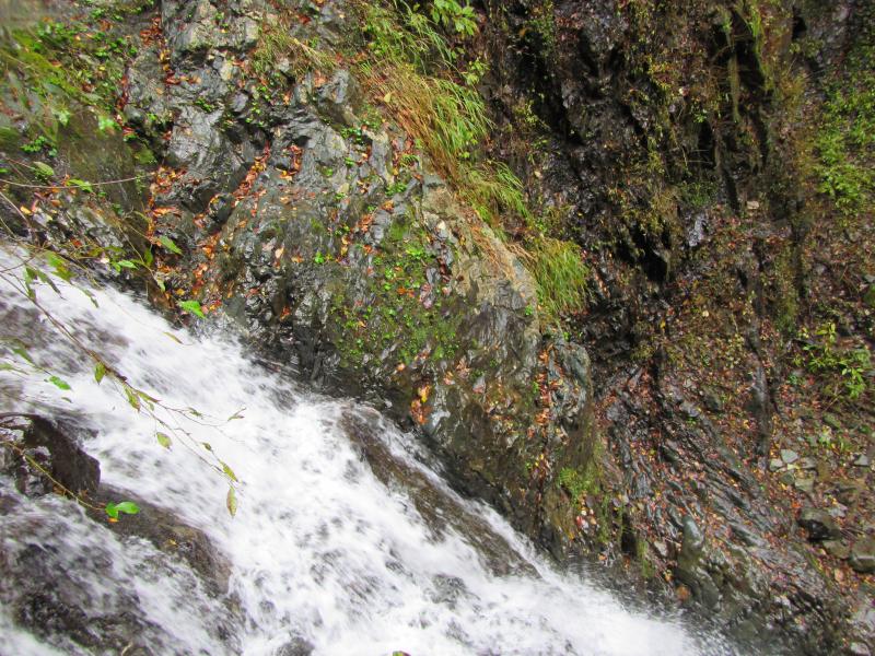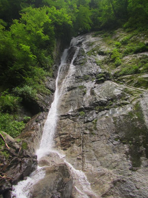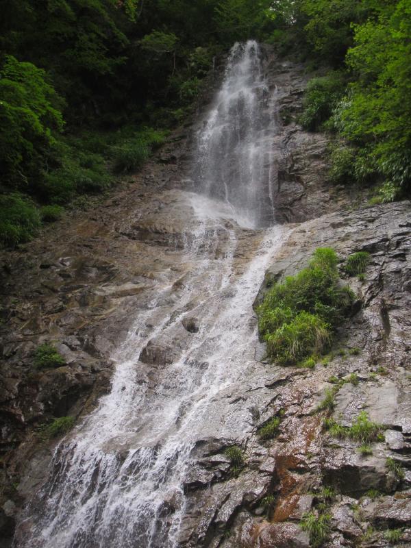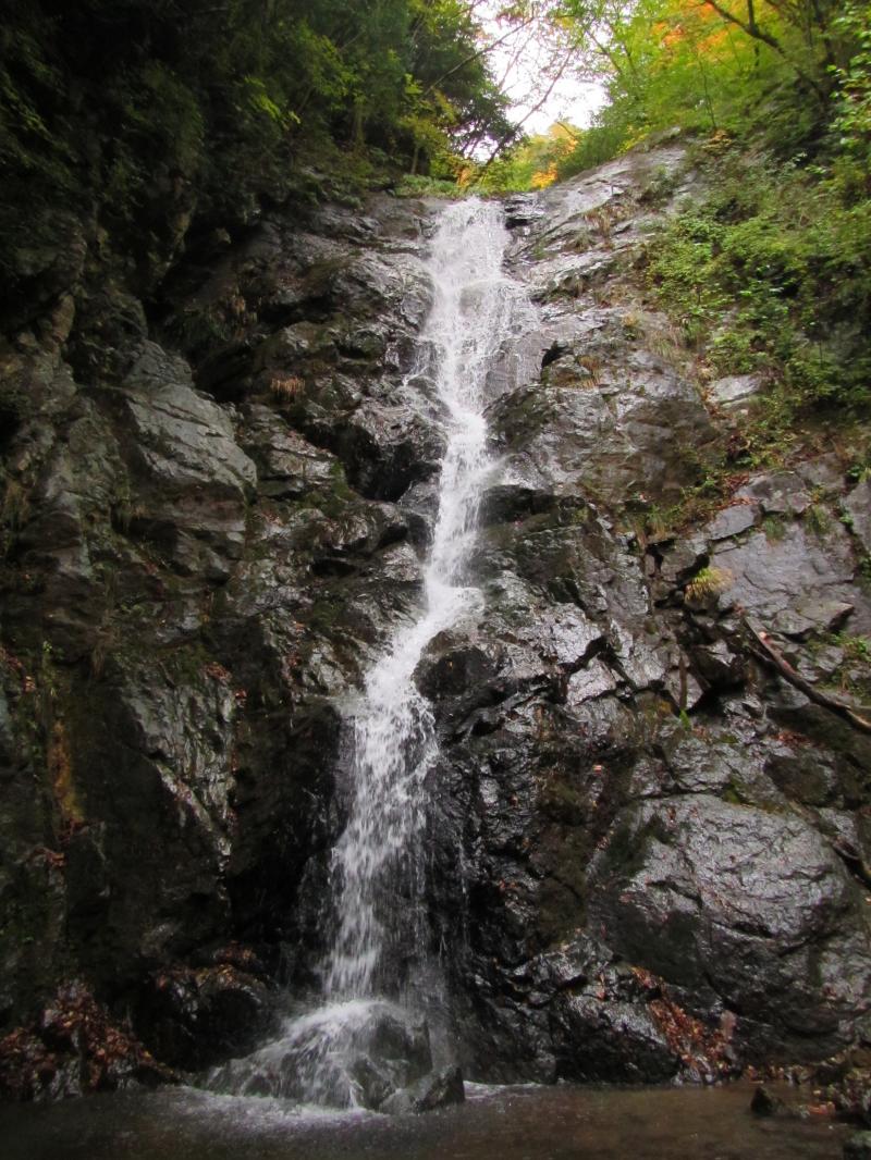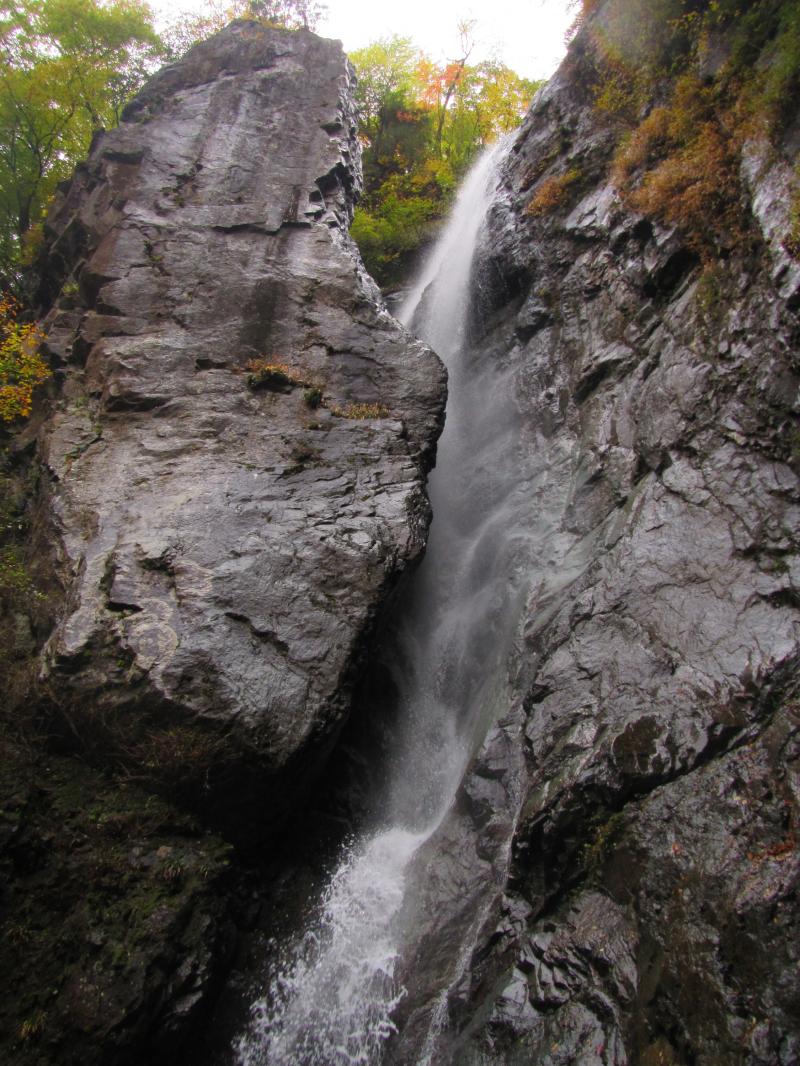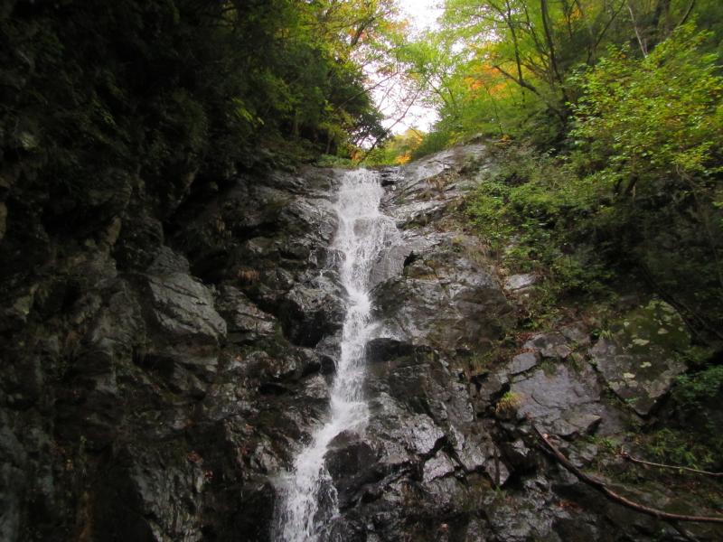男性的で豪快な本棚に対して、スラブを優雅に流れ落ちる女性的な美瀑で、日本登山体系などでは落差40mと記されています。