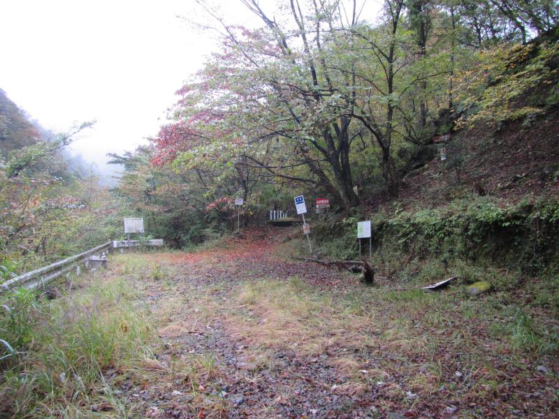 Uターンして登る林道を登山道で短くショートカットし、しばらく進むと林道終点である伝道へ。