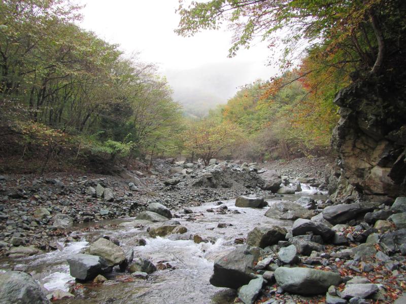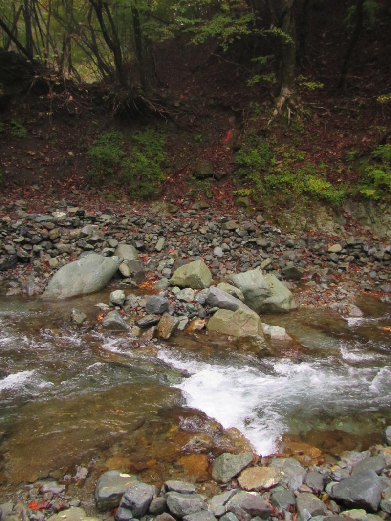 しばらく単調な河原を進むと、やがて大滝沢出合へ。早戸大滝はもうすぐです。