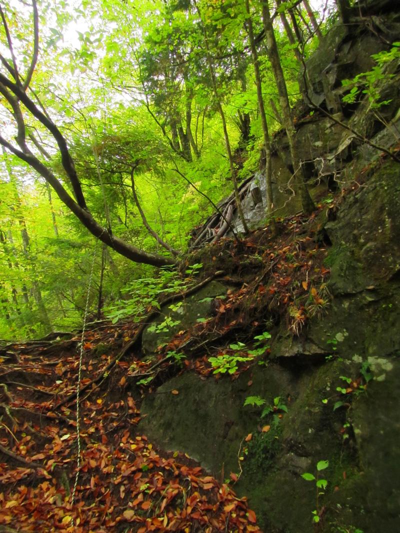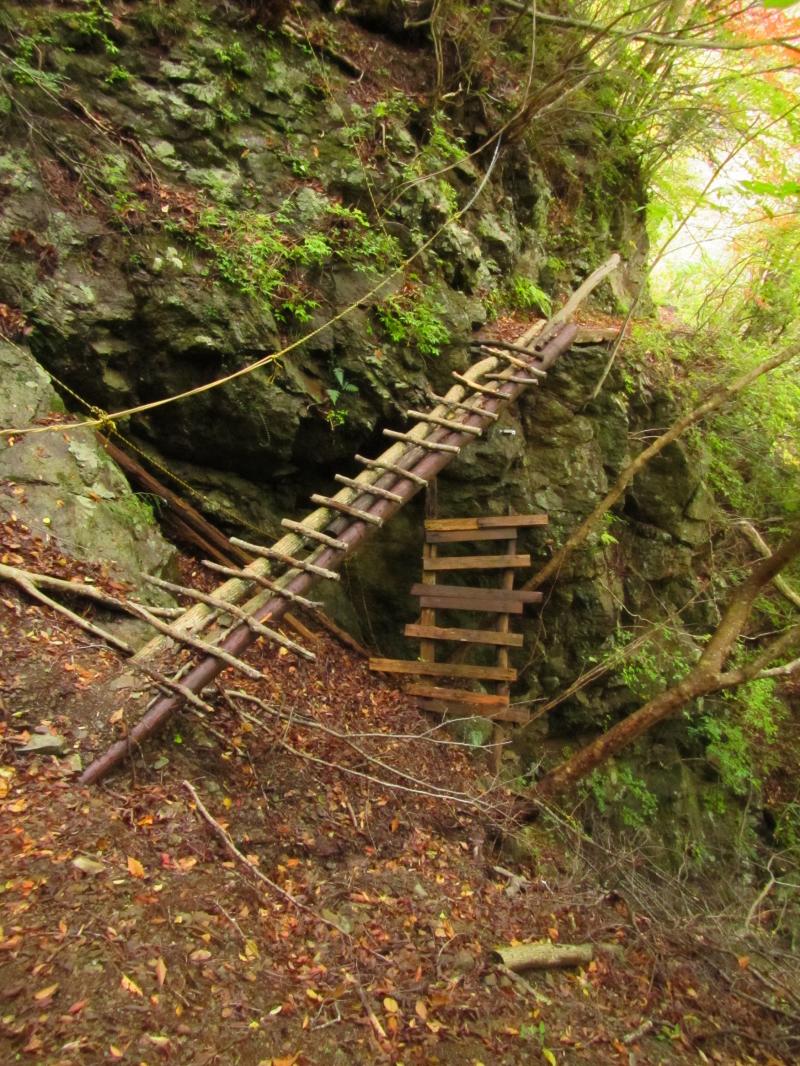 ただ上部には支点となるものがないので、フリーでの下降は困難。高巻き道で降りることになります。