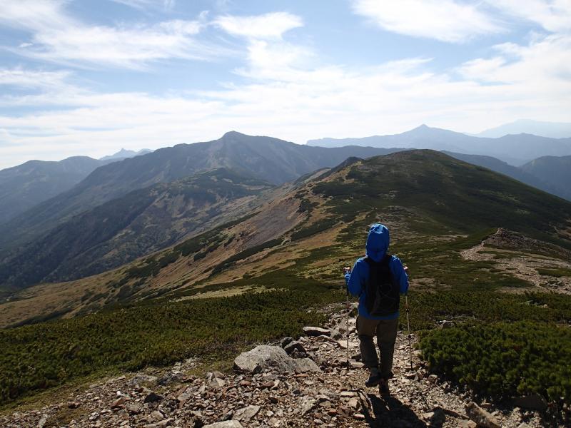 2日目:キャンプ場(160分)北ノ俣岳(120分)黒部五郎山頂手前中俣乗越先(240分)薬師峠キャンプ場