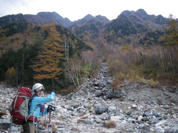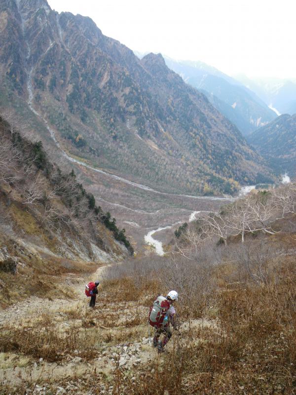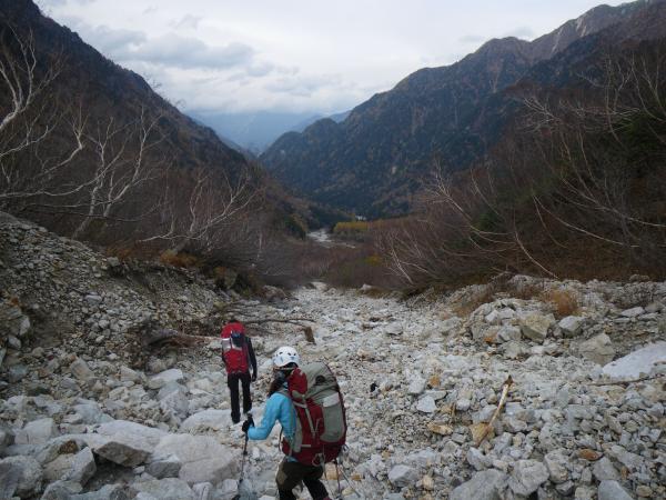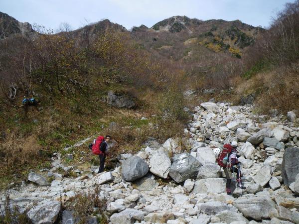 水俣乗越まではまったく問題なしでしたが、乗越からの下りがガレ場で斜度があって歩きにくく、おまけに北鎌沢出合まで長いので、3日間で一番疲れたところだと思いました。