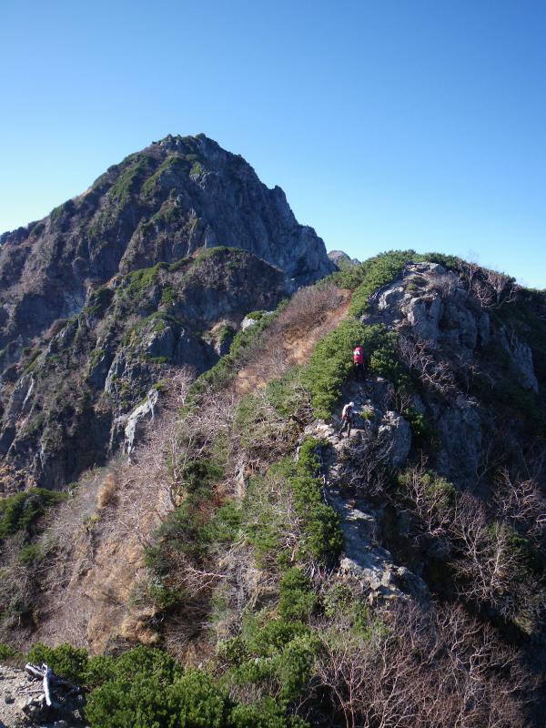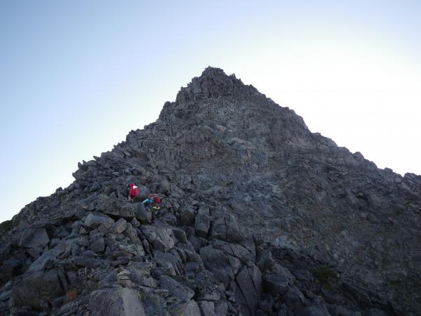 北鎌平から頂上基部まで大きなガレ場になり、基部から頂上までガレてたりクライミングが必要です。