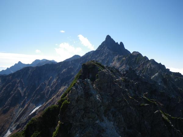 2日目:北鎌沢出合5:40→北鎌のコル7:50→独標11:45→山頂16:20→槍ヶ岳山荘17:00(テント泊)
