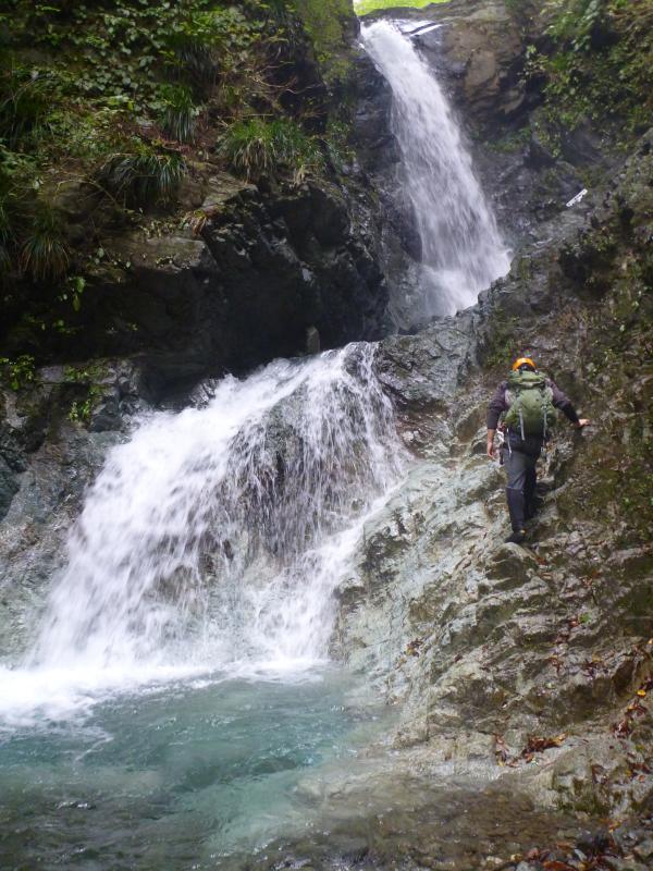 F1から岩が斜めっていて、いきなり登る滝としては自分にはややキツい。ウォーミングアップ