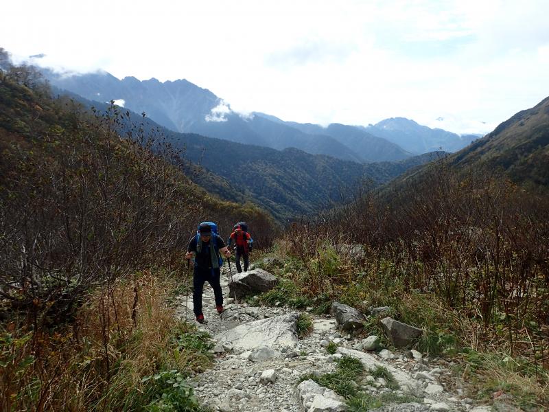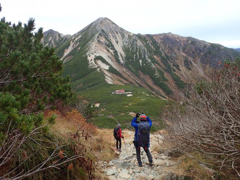 - 10/11深山荘駐車場(90分)わさび平 (210) 鏡平山荘(45分)弓折岳分岐(60分)双六小屋(100分)三俣峠(40分)三俣山荘