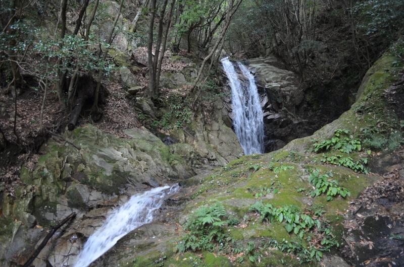 宇賀渓から滝を巡りながら、中道ルートで登り、金山尾根ルートで下山するプラン。