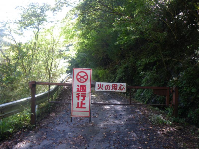 ①林道川原木屋線はマイカー通行止の為、ゲートがあります。この林道は一部舗装で、一部未舗装です。