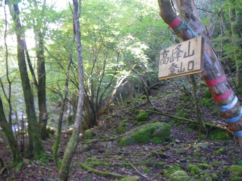 - 林道川原木屋線起点(22分)女王滝(32分)高峰山登山口(25分)鞍部(17分)高峰山(15分)鞍部(25分)高峰山登山口(45分)林道川原木屋線起点