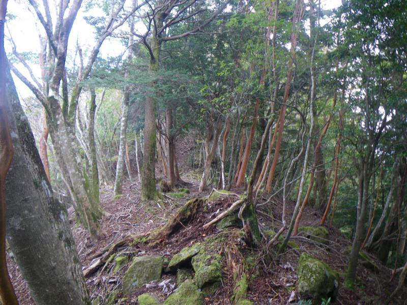 ④鞍部~高峰山は岩場混じりの尾根が続きます