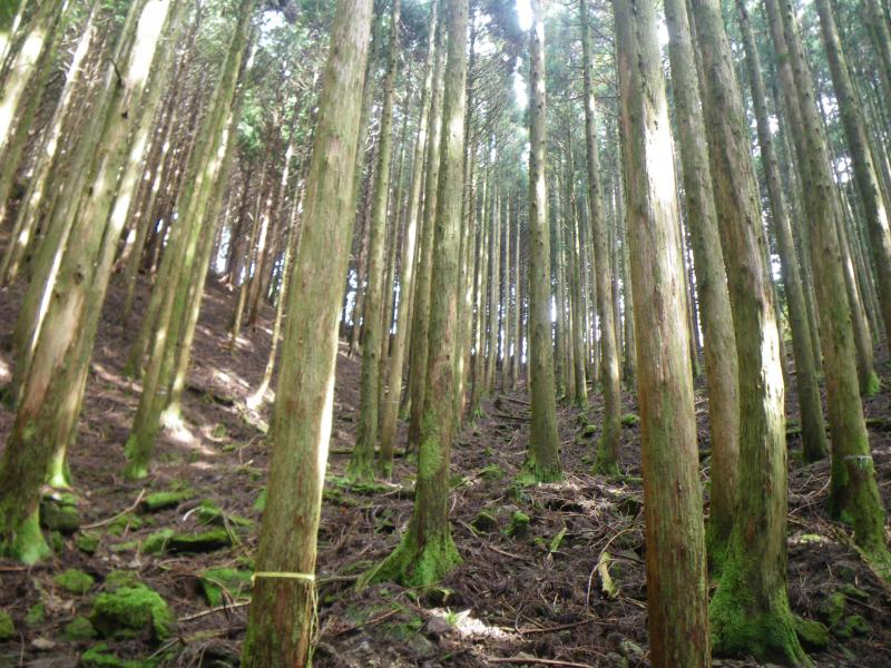 高峰山(たかみねやま・1045m)は一等三角点のある近畿百名山の一つで、山頂からは尾鷲市街や熊野灘が見渡せます。南側の矢ノ川峠から登るのが通常ですが、旧国道42号の矢ノ川峠への道がかなり傷んでいる為にマイカーでのアプロ-チが厳しく、歩くとかなりの時間ロスになるので、北側の林道川原木屋線から登ってきました。林道川原木屋線へ向う国道425号も頻繁に通行止になるので注意が必要で、今回も奈良側は通行止でした。