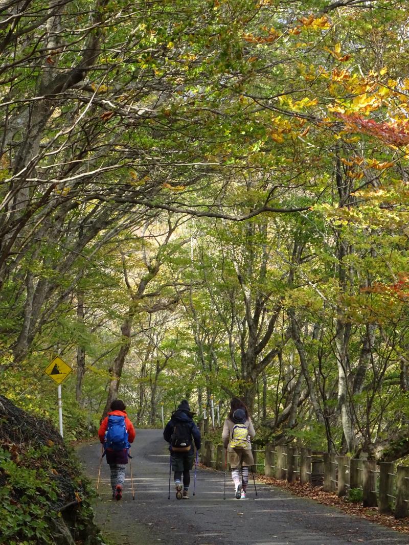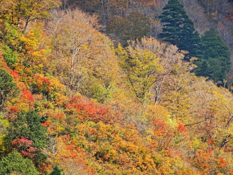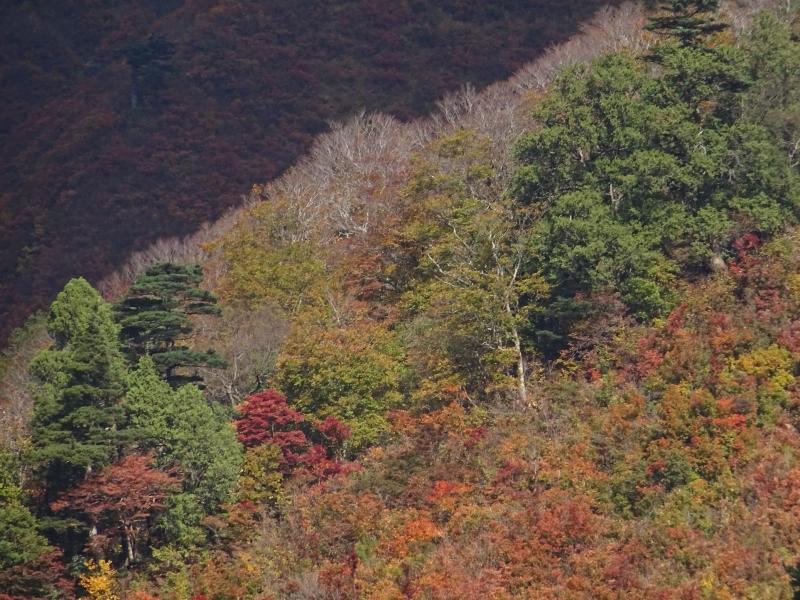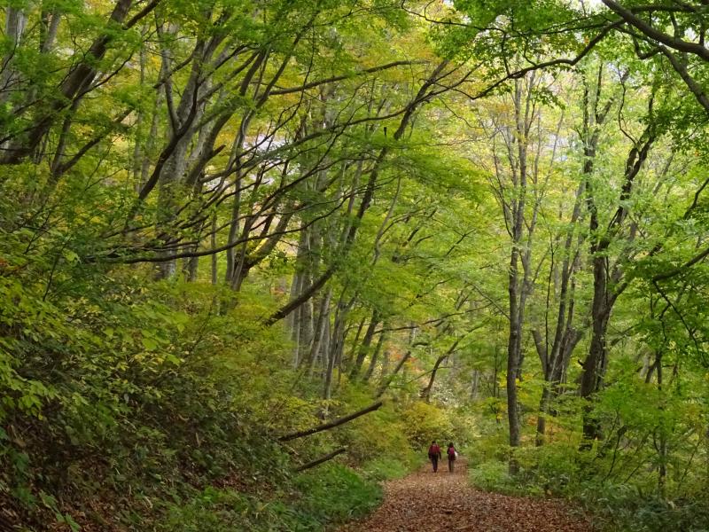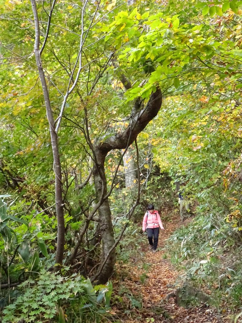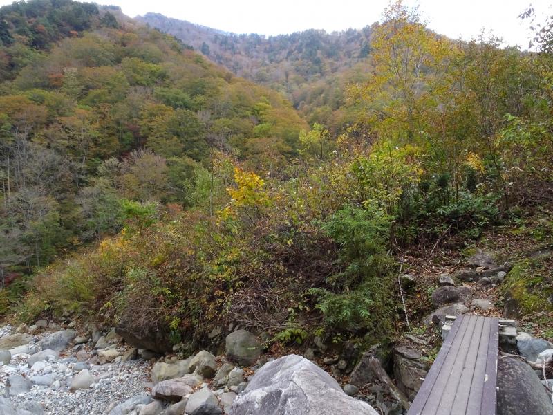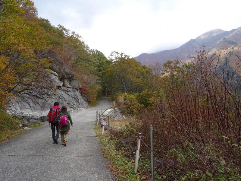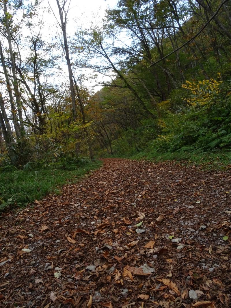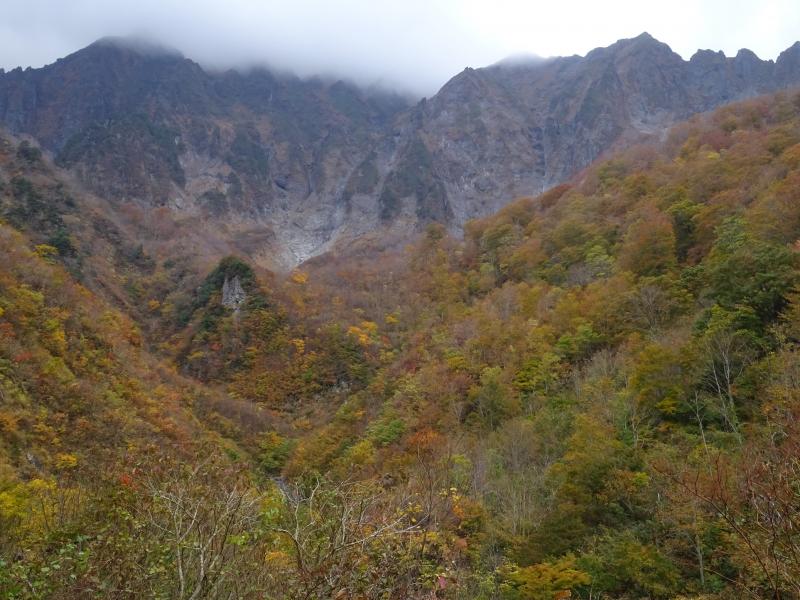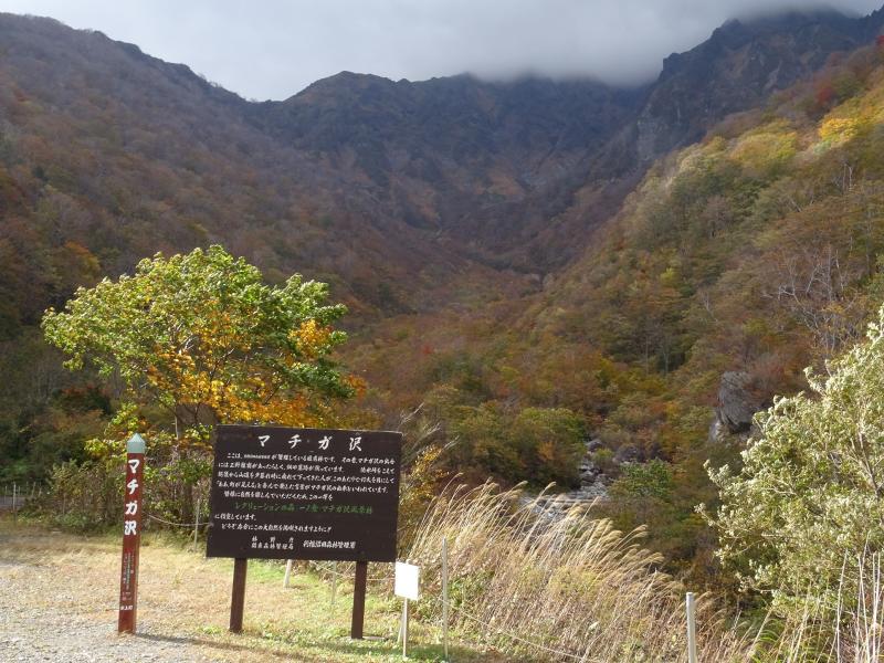 雲間から光が指すと綺麗な紅葉が遠くの山に見られるのですが、マチガ沢が近づく頃から冷たい風が強くなってきました。紅葉の頃は寒さ対策が必要ですね。