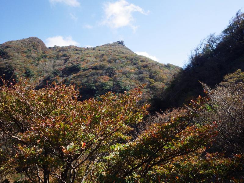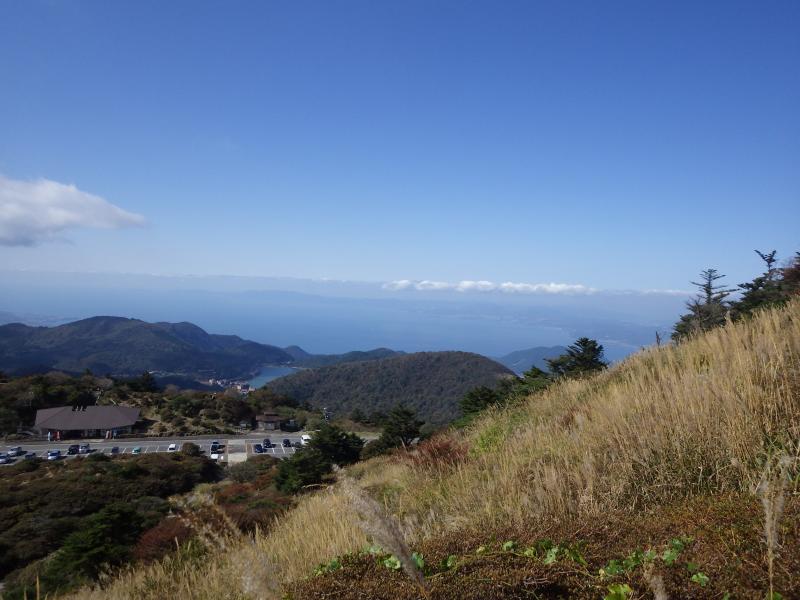 今日は予報通りとってもいい天気!前回は霧で通行止めだった仁田峠まで上がってこられました。駐車場には紅葉を見に来た観光客の方がたくさん。と、山を見上げると、、、