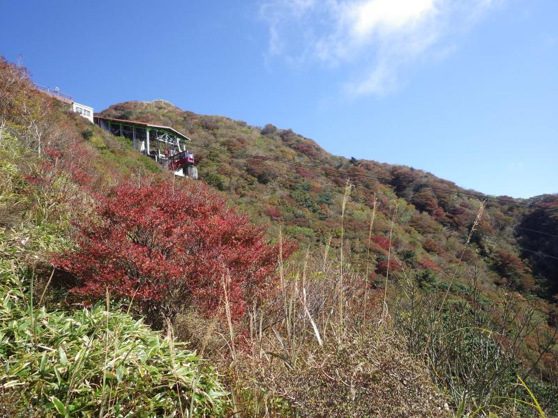 んーーー、まっかっかーではない感じ。後で見たロープーウェイの切符売場には“5分”との案内が。見頃はもう少し先のようです。