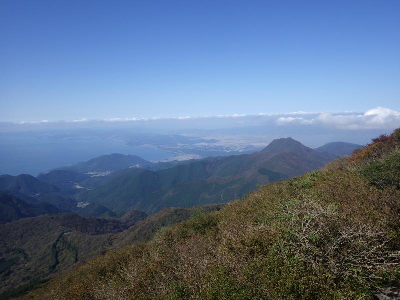 国見岳へはちょっと岩場の続く難コース。途中鎖場が出てきたり足場が悪いのに笹で覆われて登山道が分かりずらかったり。特に下りでは慎重に歩いてください。山頂は360度の展望が広がります。普賢岳、平成新山はもちろん、天草の島々や有明海、ほんと気持ちのいい山頂です。が、残念なことにあまり広くはないのでのんびり休憩とはいかない場所です。