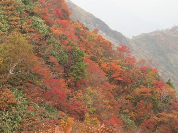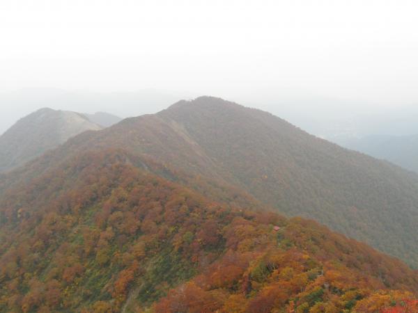 紅葉は山頂から中腹にかけて、赤や黄色にしっかり色づいていました。