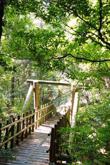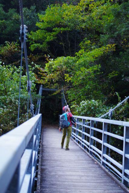 橋から見ることができる滝は圧巻です。橋は揺れます。