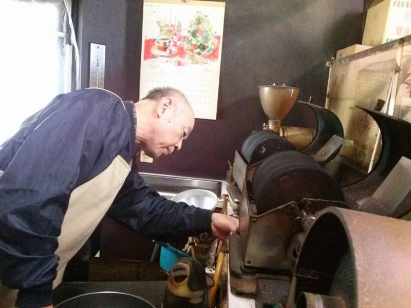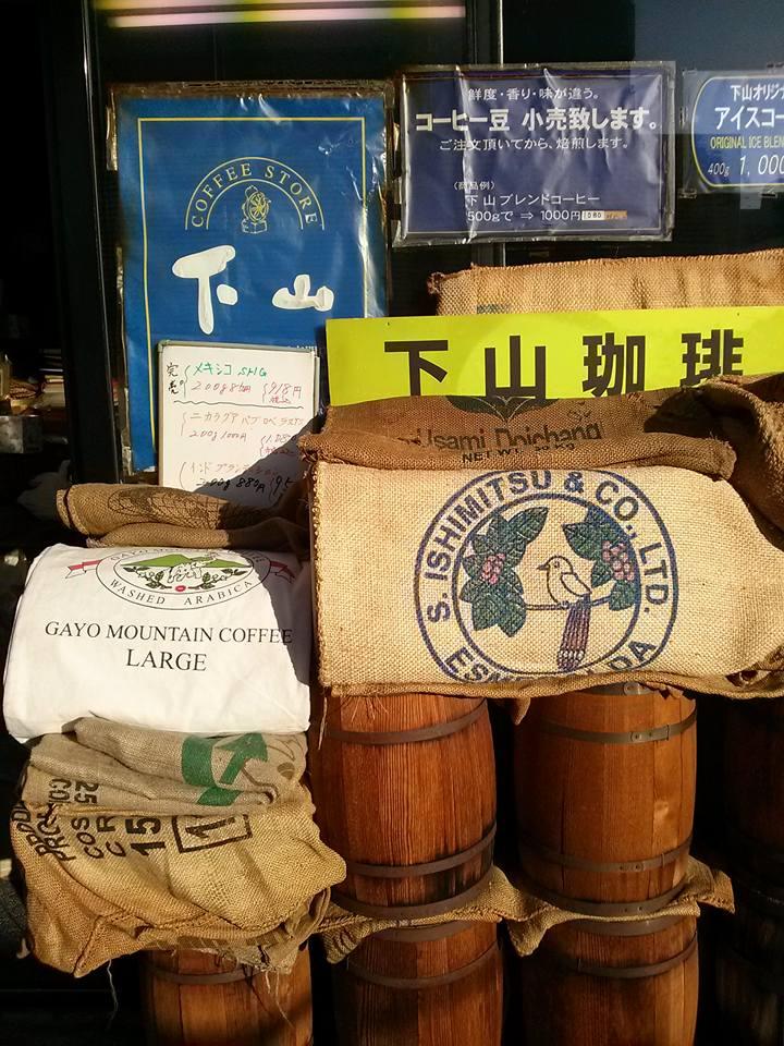 その後、駅から徒歩12分くらいにある「下山珈琲」 注文して、その日に焙煎してくれます。今回は焙煎の様子もみせていただきました。「桃太郎珈琲」頂きました。