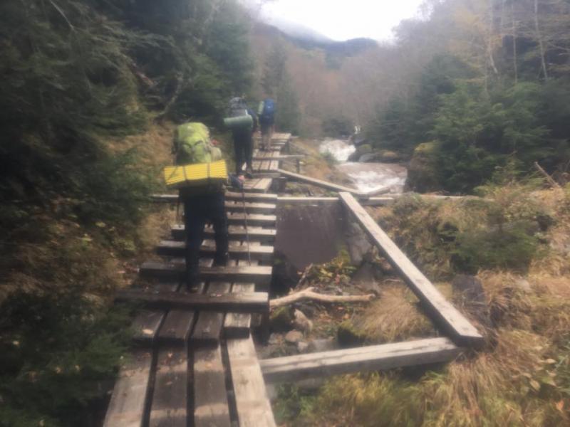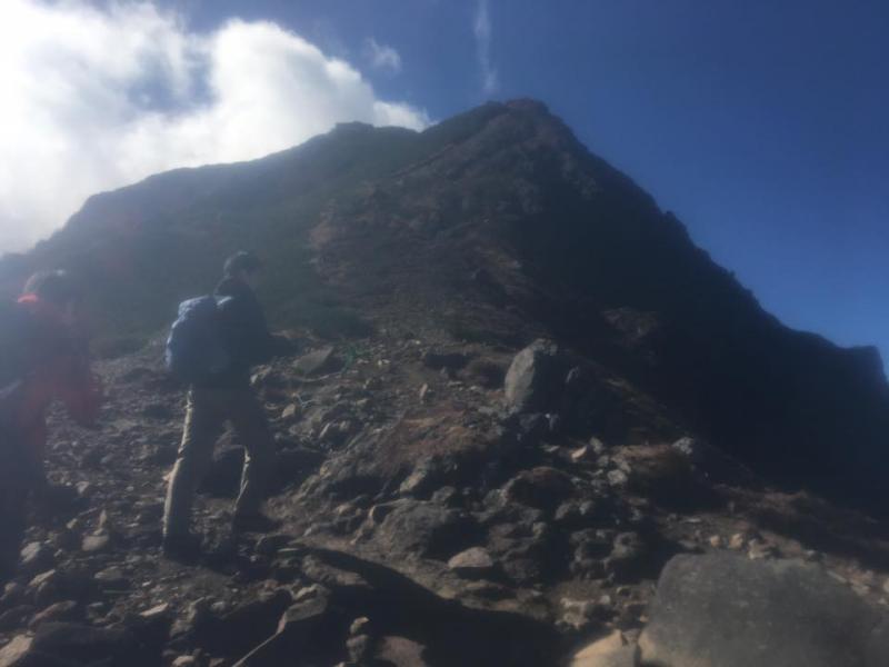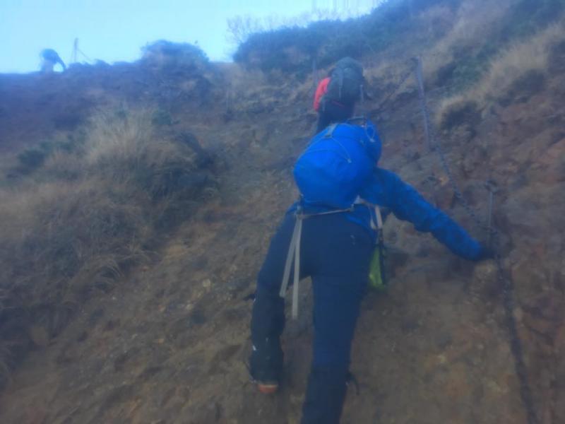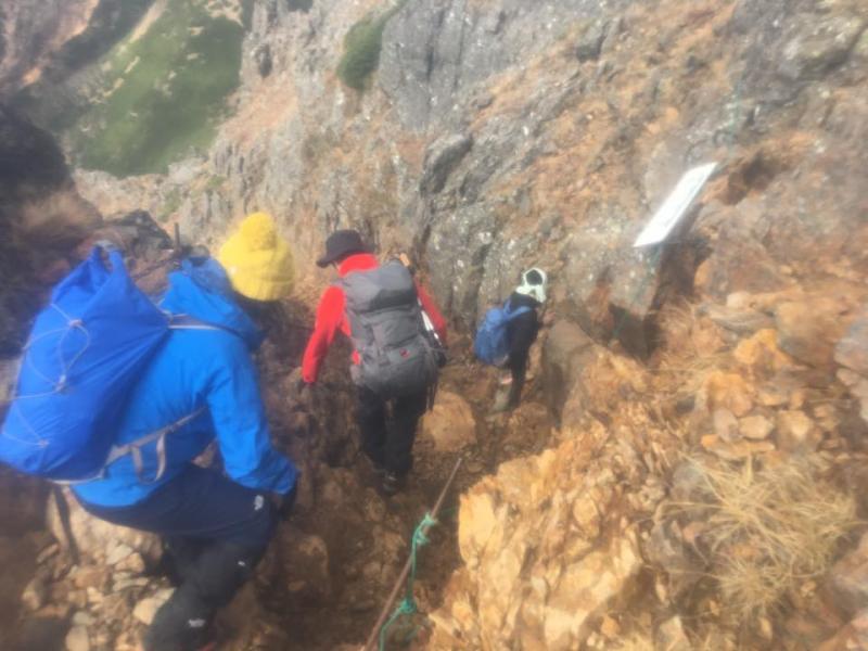 二日目に通過した地蔵尾根でしたが初日の雨のため岩場が濡れていたためなかなか