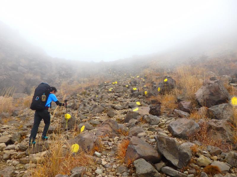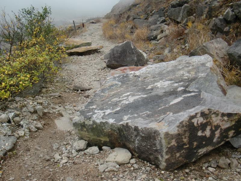 法華院から北千里・すがもり峠辺りは岩が多く元々歩きにくいのですが、地震の影響もあったようで浮き石が多く、あまりペースを上げられません。