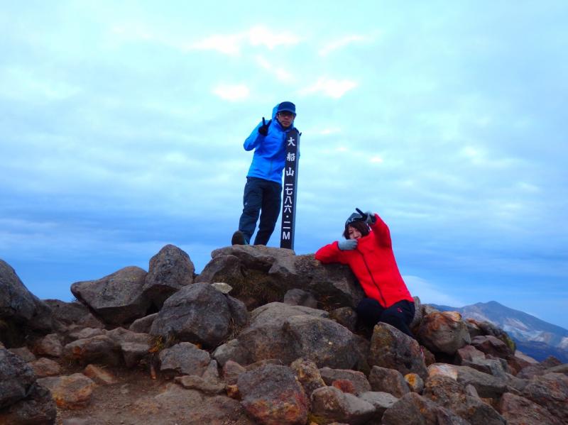 あいにく雲に遮られて朝日は見れませんでしたが、雲海や白んだ空など、景色のいい山頂を満喫後…ゆるく下山。
