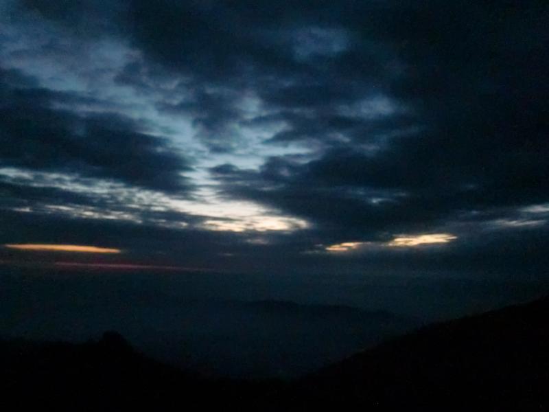 山頂に到着した時にはうっすらと東の空が明るくなってるくらいでまだまだ暗く、お湯を沸かしてコーヒーを飲みつつ朝を待ちます。
