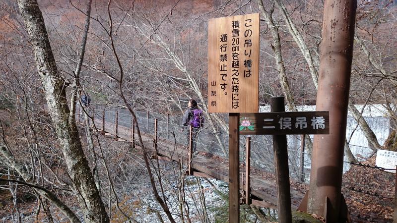 - 駐車場⇒(10分)西沢渓谷入り口⇒(20分)⇒インフォメーション⇒(30分)⇒吊り橋⇒(90分)⇒折り返し地点⇒(90分)⇒西沢渓谷入り口⇒駐車場(10分)