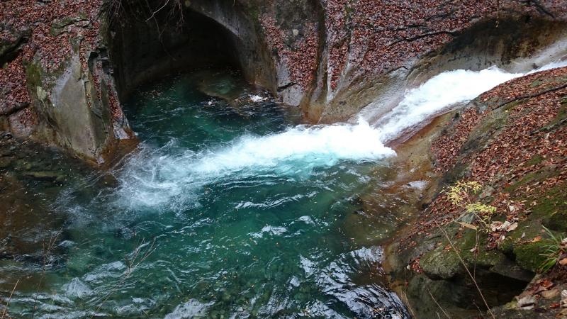 西沢渓谷の滝つぼはエメラルドグリーンで非常にきれいです。