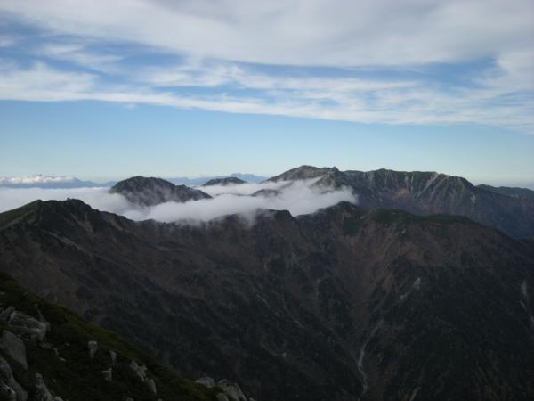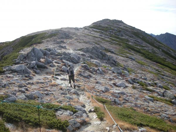 千畳敷→(30分)→極楽平→(2時間20分)→檜尾岳→(1時間)→熊沢岳→(1時間30分)→東川岳→(20分)→木曽殿越→(10分)→