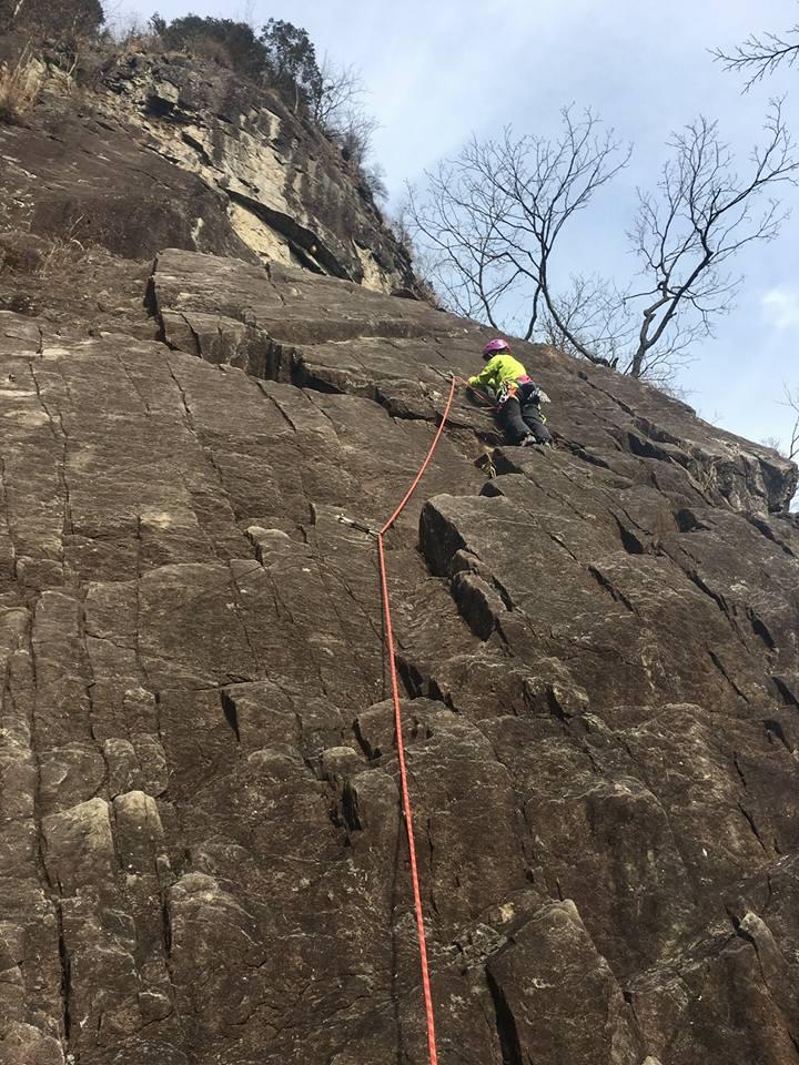 初めての場所で、ウキウキです。クラックやボルトのルートがあります♪