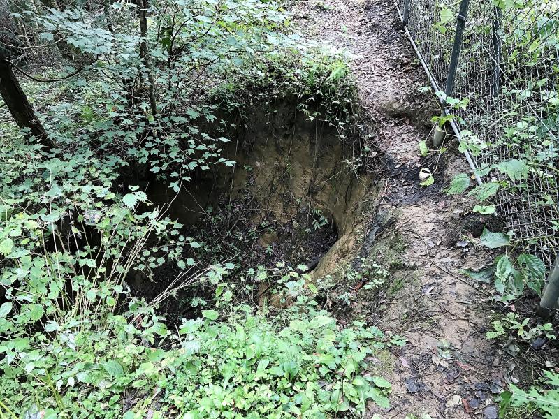 崩落範囲は長さ・深さともに1m50cm程。注意して通行してください。