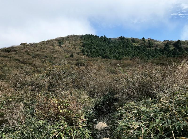 踏み跡が最も薄い区間です。温暖な時期は繁って踏み跡が隠れます。