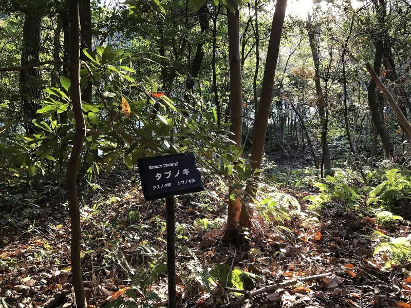 『約17ヘクタールの「森」には、スダジイ、アラカシ、タブノキ、クスノキ、ヤマモモなど約50種の常緑広葉樹と、コナラ、ネジキ、ハゼノキなど約40種の落葉広葉樹が生育しています。