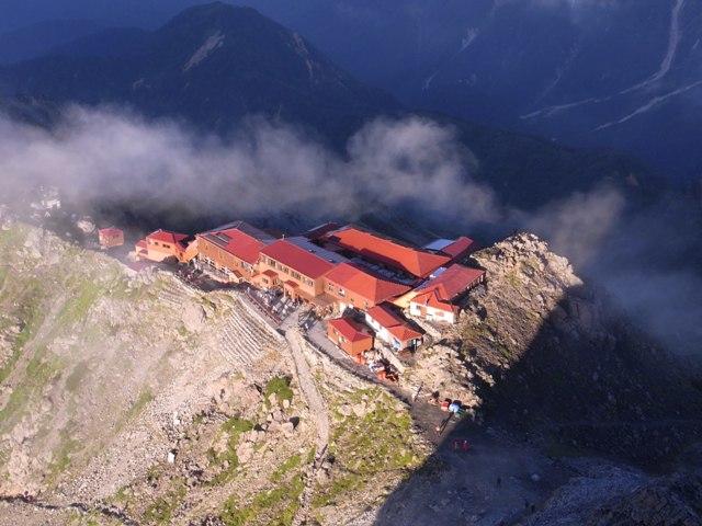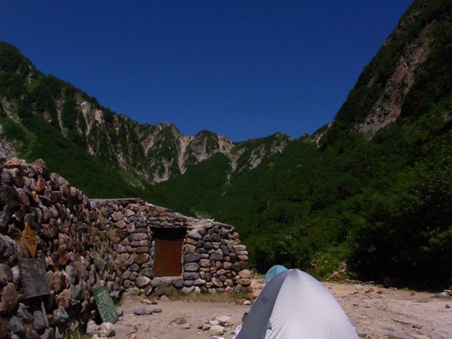 - 初日 上高地(2.20)横尾(1.20)槍澤ロッジ(2.00)天狗原分岐(2.10)槍ヶ岳山荘(40)槍の穂先往復。