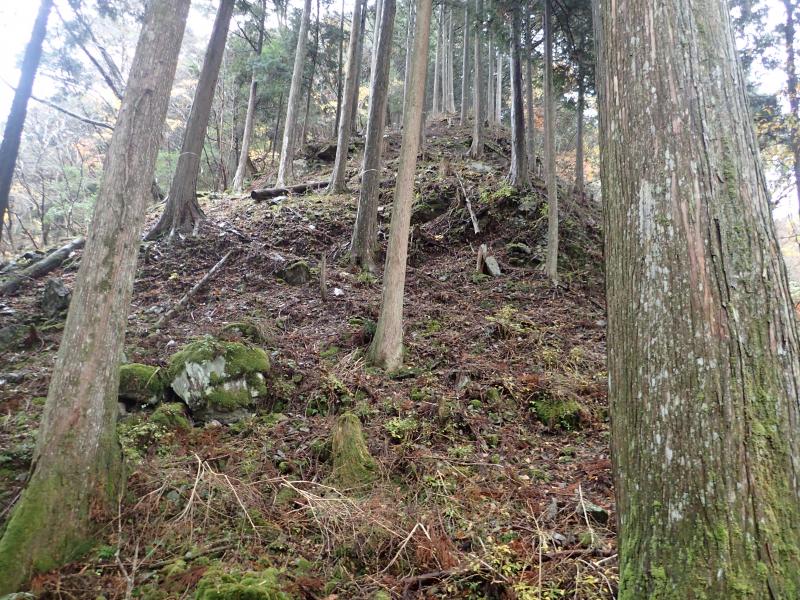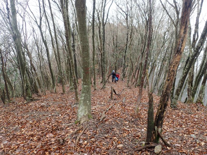 踏み跡は少しあるが、尾根まで荒れた急登で、落石に注意が必要。
