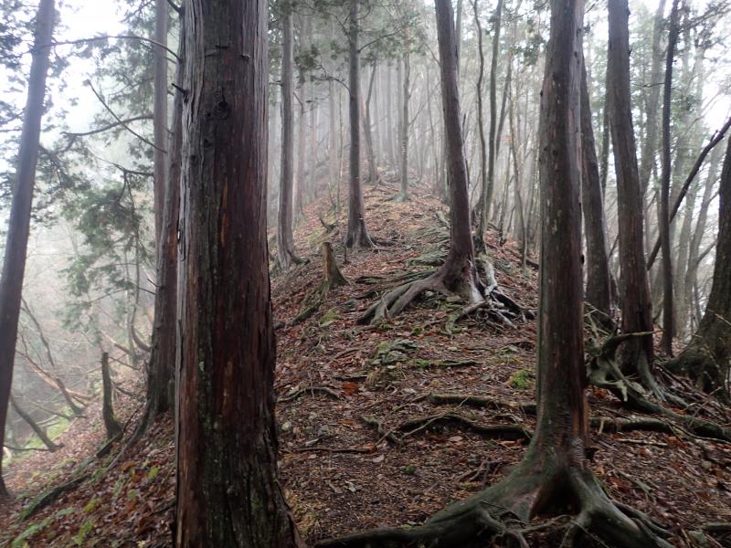 一般的なルートは明神平から尾根伝いに向かうか、大又の笹野神社から登るか、ですが